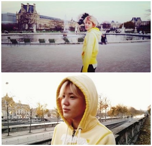 첫 번째 사진 속 성종은 프랑스 파리 튈르리 공원 호수를 배경으로 포즈를 취했다. 사진에는 가을 날씨에 한적한 유럽의 풍경이 담겨있다. 두 번째 사진에서 성종은 노란색 후드를 쓰고 자연스런 옆모습을 보였다.