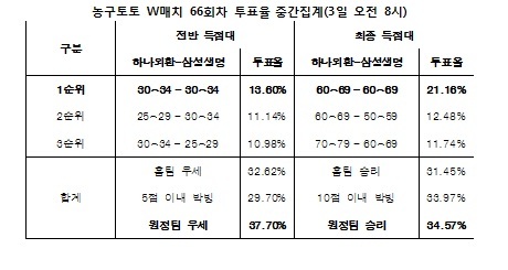 2013-2014시즌 농구토토 W매치 66회차 투표율 중간집계 결과