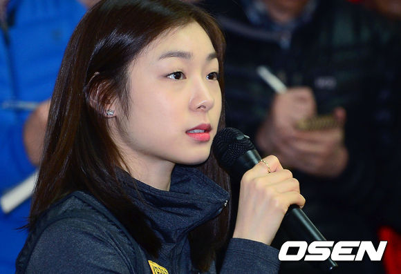 출국에 앞서 김연아가 취재진과 인터뷰를 하고 있다.