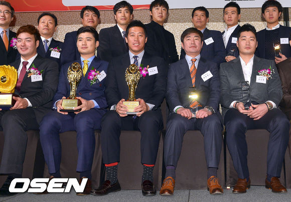 3일 오전 서울 소공동 플라자호텔에서 진행된 '2103 조야제약 프로야구 대상' 시상식에서 프로야구대상 수상자들이 포즈를 취하고 있다.