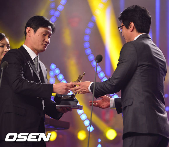 포항 황선홍 감독이 감독상을 수상하고 있다
