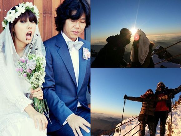 지리산 결혼을 올린 정인은 지난 2일 자신의 트위터에 “해 떴다”라고, 조정치 역시 “무릎 연골이 갈리는 고통을 견디며 정상에 선 부부”라는 글과 사진을 게재했다.