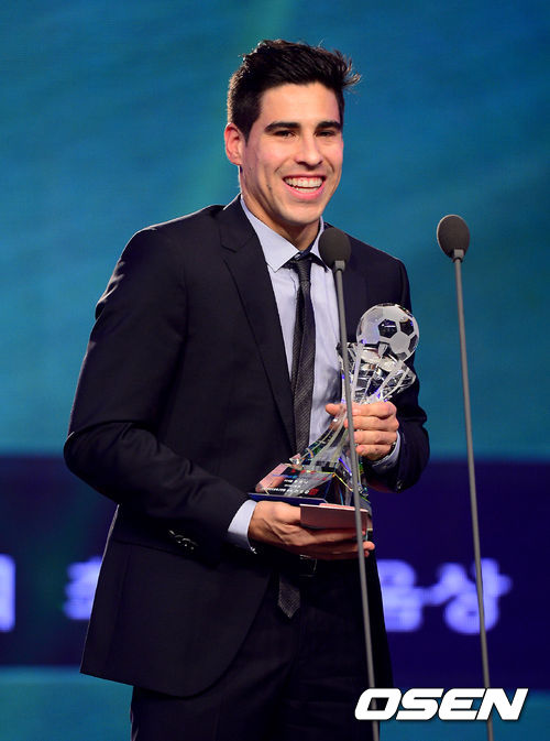 K리그 클래식 도움상에 FC 서울 몰리나가 수상하며 소감을 말하고 있다.