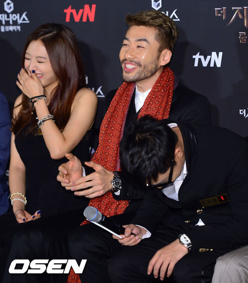 3일 오후 tvN '더 지니어스 시즌2: 룰 브레이커'(이하 더 지니어스2) 시사회 및 기자간담회가 서울 마포구 성산동 상암 CGV 8관에서 열렸다. 노홍철의 말에 재경과 은지원이 환하게 웃고 있다.