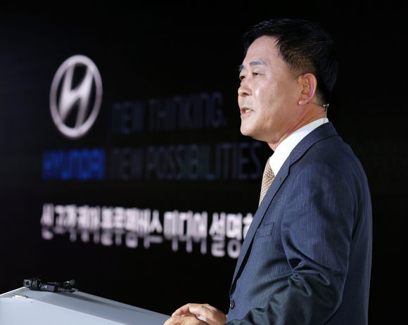 곽진 현대차 판매사업부장(전무)이 새로운 '블루멤버스(BLUEmembers)' 서비스에 대해 설명하고 있는 모습./ 현대차 제공.
