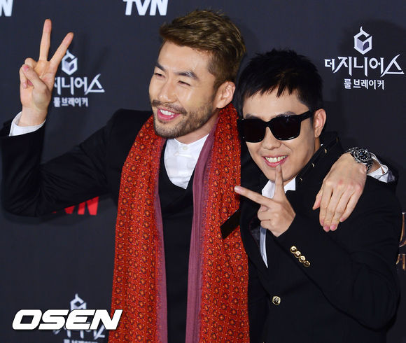 3일 오후 tvN '더 지니어스 시즌2: 룰 브레이커'(이하 더 지니어스2) 시사회 및 기자간담회가 서울 마포구 성산동 상암 CGV 8관에서 열렸다. 노홍철과 은지원이 포토타임을 갖고 있다.