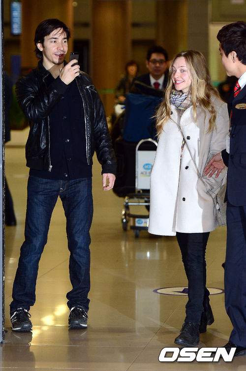 할리우드 톱스타 아만다 사이프리드와 저스틴 롱이 3일 오후 인천공항을 통해 입국했다.