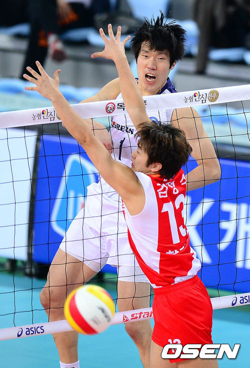 3일 오후 인천계양체육관에서 열린 '2013-2014 NH농협 V리그' 남자부 대한항공과 한국전력의 경기 1세트 대한항공 신영수가 대각선 공격을 시도하고 있다.