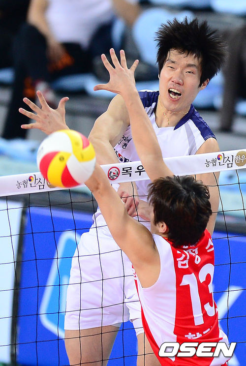 3일 오후 인천계양체육관에서 열린 '2013-2014 NH농협 V리그' 남자부 대한항공과 한국전력의 경기 1세트 대한항공 신영수가 대각선 공격을 시도하고 있다.