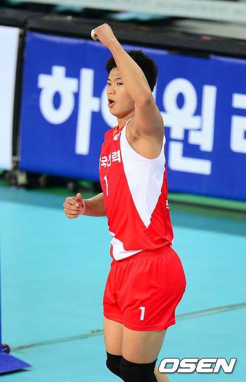 3일 오후 인천계양체육관에서 열린 '2013-2014 NH농협 V리그' 남자부 대한항공과 한국전력의 경기 1세트 한국전력 서재덕이 득점을 올린 뒤 기뻐하고 있다.