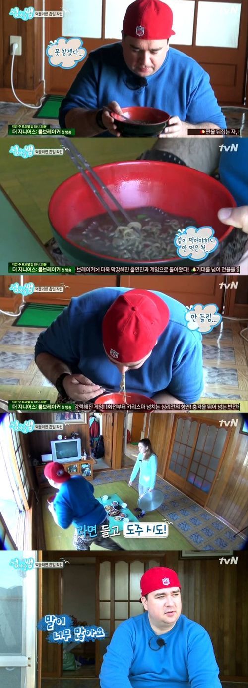샘 해밍턴이 문어 먹물라면을 폭풍 흡입하며 먹방의 대가다운 모습을 보였다.