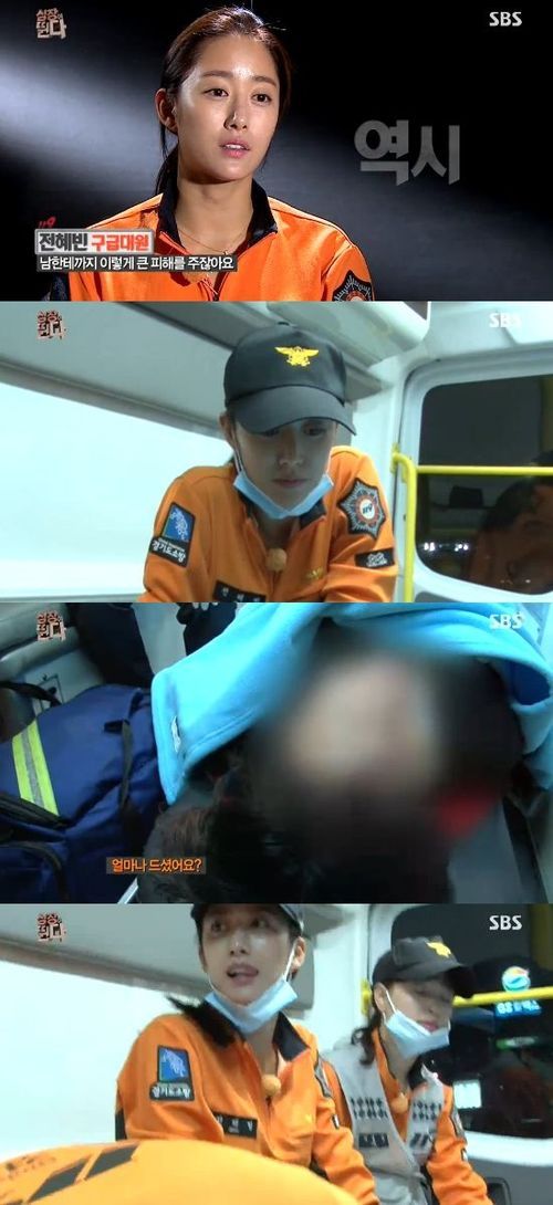 전혜빈은 3일 오후 방송된 SBS 예능프로그램 '심장이 뛴다'에서 교통사고 현장에 출동해 사고 수습을 도왔다.