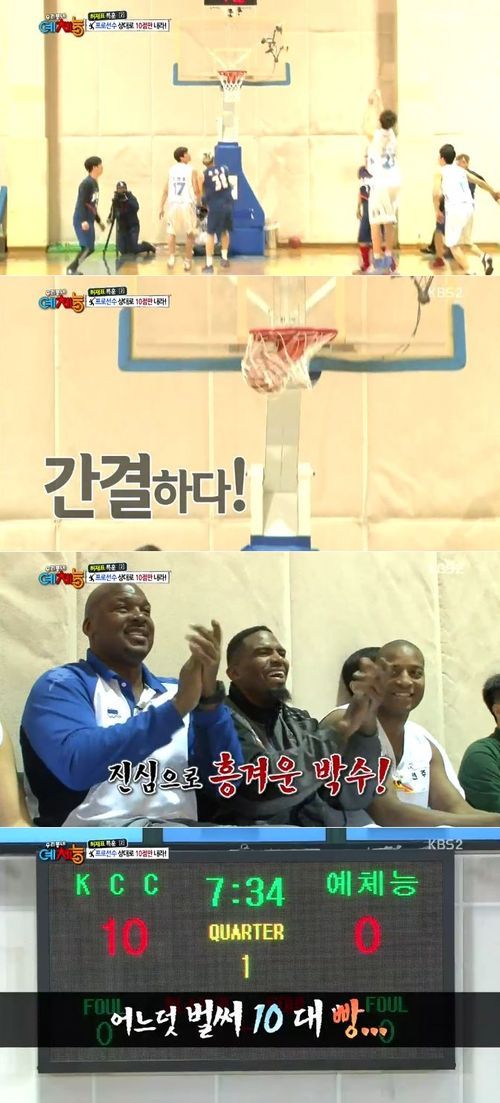 3일 오후 방송된 KBS 2TV '우리동네 예체능'(이하 '예체능')에서는 멤버들이 특훈으로 전주KCC 이지스 프로선수들과의 대결이 펼쳐졌다.