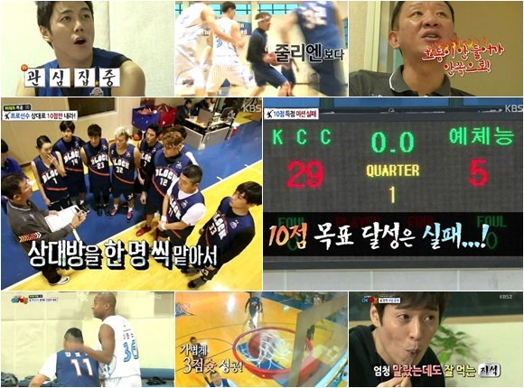 '예체능' 멤버들은 한 쿼터 경기에서 10점 득점을 목표로 하고 경기에 임했음에도, 10대 0까지 휘몰아치는 이지스 선수들의 높은 벽에 부딪혀 결국 최종 29대 5로 패했다. 농구 실력파 김혁, 서지석, 줄리엔강 도 프로선수들 앞에서는 그저 속수무책으로 무너졌다.