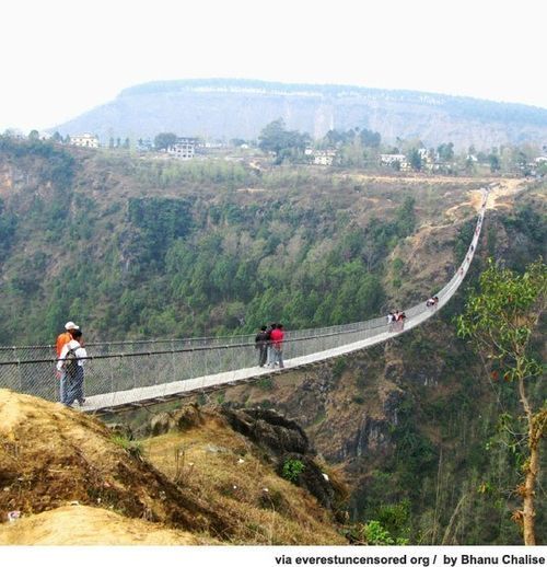 최근 온라인 커뮤니티에 소개 돼 네티즌들의 눈길을 사로잡고 있는 사진은 네팔 파르밧 지역의 쿠쉬마에 있는 교량을 찍은 것이다. 히말라야 관광 정보 사이트에 처음 소개 된 사진으로 높이가 117m에 이르는 구름다리를 보여주고 있다.