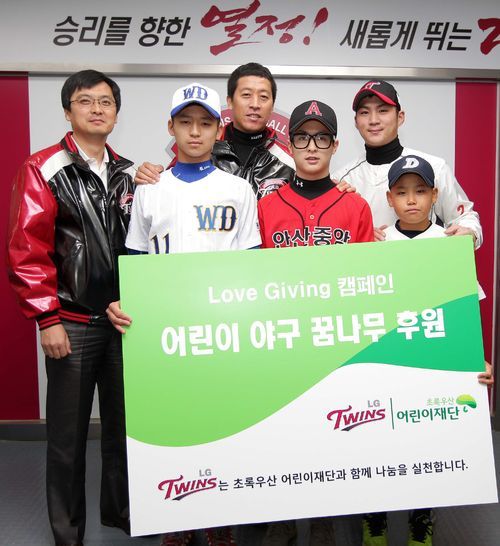 LG 트윈스가 어린이 재단에 야구 꿈나무 후원금을 전달했다.