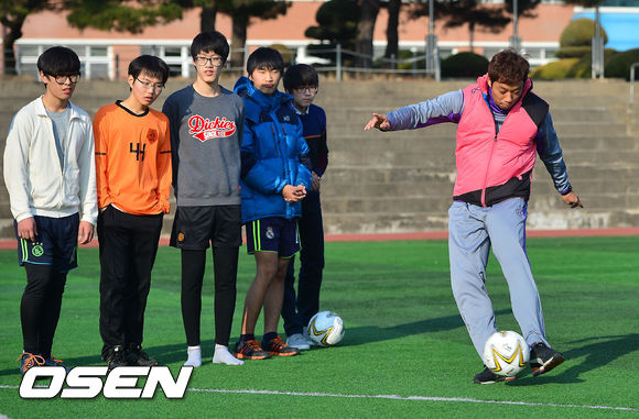 4일 오후 경상북도 상주 관내 여러 초등학교와 고등학교에서 축구로 만드는 행복 '추캥'이 봉사활동을 했다. 염기훈이 축구 꿈나무들을 위해 프리킥 시범을 보이고 있다.