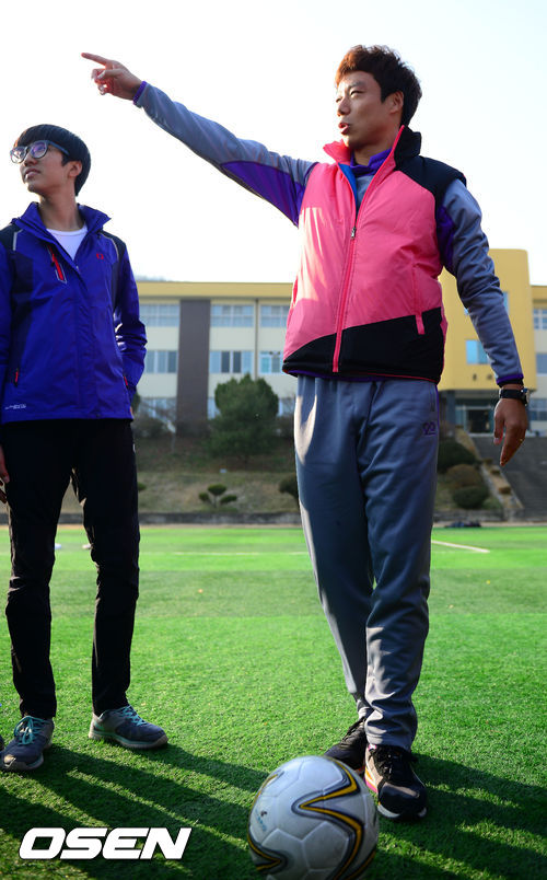 4일 오후 경상북도 상주 관내 여러 초등학교와 고등학교에서 축구로 만드는 행복 '추캥'이 봉사활동을 했다. 염기훈이 축구 꿈나무들에게 축구 패스에 대해 설명하고 있다.