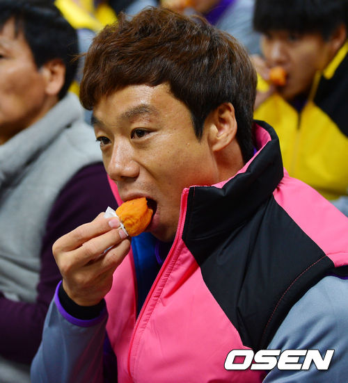 4일 오후 경상북도 상주 관내 여러 초등학교와 고등학교에서 축구로 만드는 행복 '추캥'이 봉사활동을 했다. 염기훈이 축구 꿈나무들을 가르친 후 실내에서 상주 곶감을 먹고 있다.