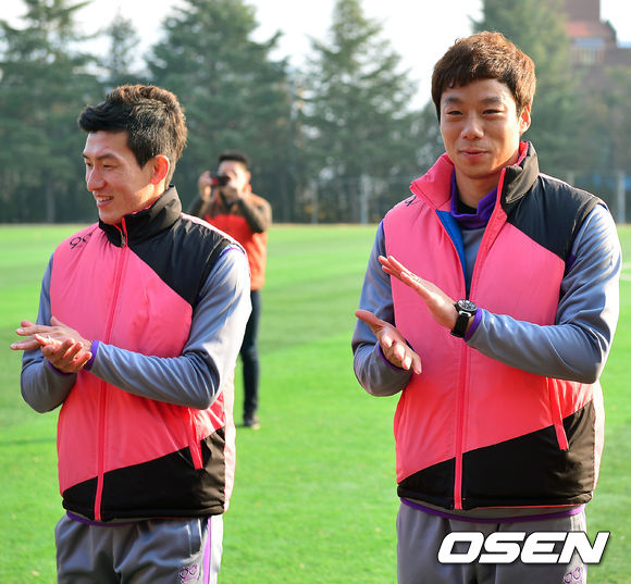 4일 오후 경상북도 상주 관내 여러 초등학교와 고등학교에서 축구로 만드는 행복 '추캥'이 봉사활동을 했다. 오장은과 염기훈이 박수를 보내고 있다.