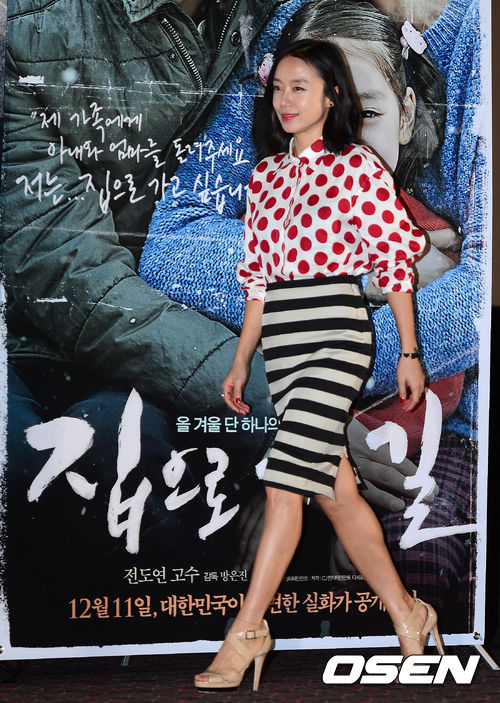 4일 오후 서울 행당동 CGV 왕십리에서 열린 영화 '집으로 가는 길' 언론배급 시사회에서 전도연이 포토타임을 위해 무대 중앙으로 걸어가고 있다.