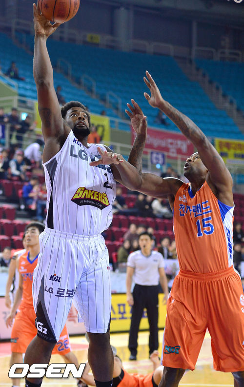 4일 오후 인천 삼산월드체육관에서 열린 '2013-2014 국민카드 프로농구' 인천 전자랜드와 창원 LG의 경기,1쿼터 LG 메시가 슛을 시도하고 있다.