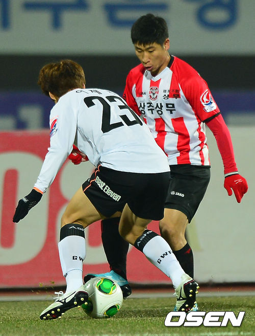 4일 오후 상주시민운동장에서 현대오일뱅크 K리그 2013 승강 플레이오프 1차전 상주 상무와 강원 FC 경기, 상주 이근호가 돌파를 시도하고 있다.