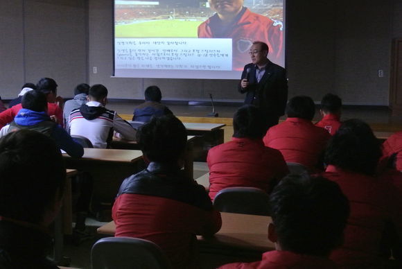 지난 11월 29일 포철고 소강당에서 포항스틸러스 18세 이하(U-18) 선수들을 대상으로 포스코경영연구소 교육혁신사업부문 손성욱 상무가 '목표를 가져라'라는 내용의 특강을 가졌다.