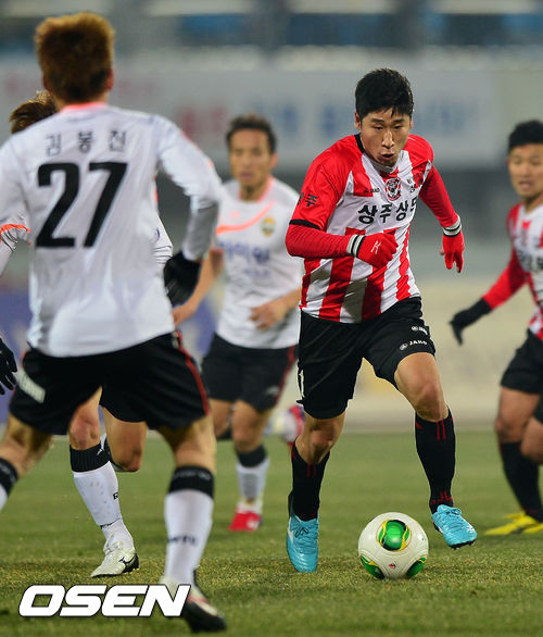 4일 오후 상주시민운동장에서 현대오일뱅크 K리그 2013 승강 플레이오프 1차전 상주 상무와 강원 FC 경기, 상주 이근호가 돌파를 시도하고 있다.