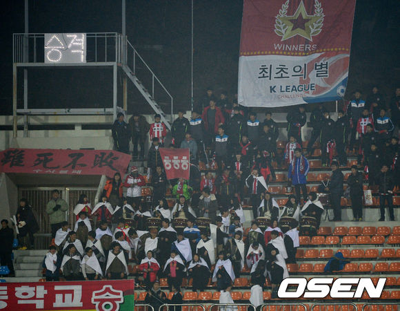 경기 종료가 얼마 남지 않은 상황에서 상주 응원단이 기뻐하고 있다. / rumi@osen.co.kr