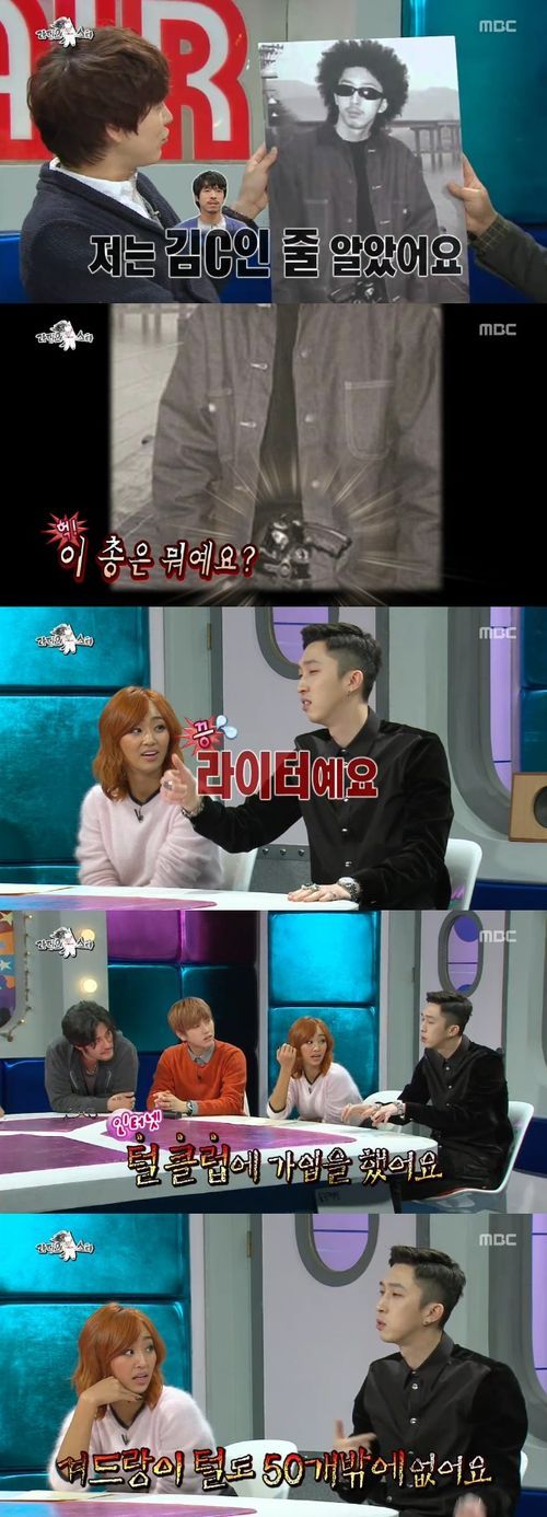 MC들이 총의 정체를 묻자 슬리피는 "라이터다. 세 보이려고 했다"며 "외국인들은 한국총기 안되는 걸 모르니까 외국인들이 무서워 하더라"라고 털어놔 웃음을 자아냈다.
