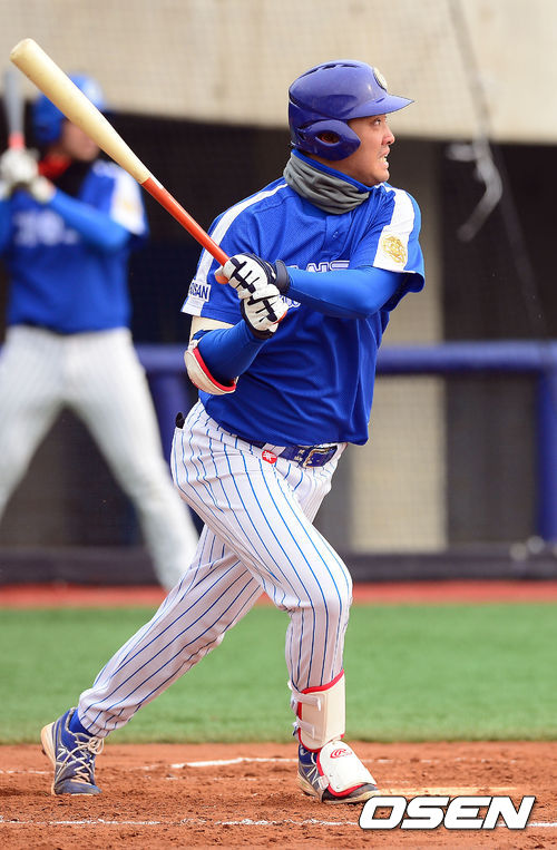 5일 오전 포항구장에서 열린 '2013 야구대제전' 포철고와 개성고의 경기, 1회말 2사 개성고 채태인이 좌전안타를 때리고 있다.