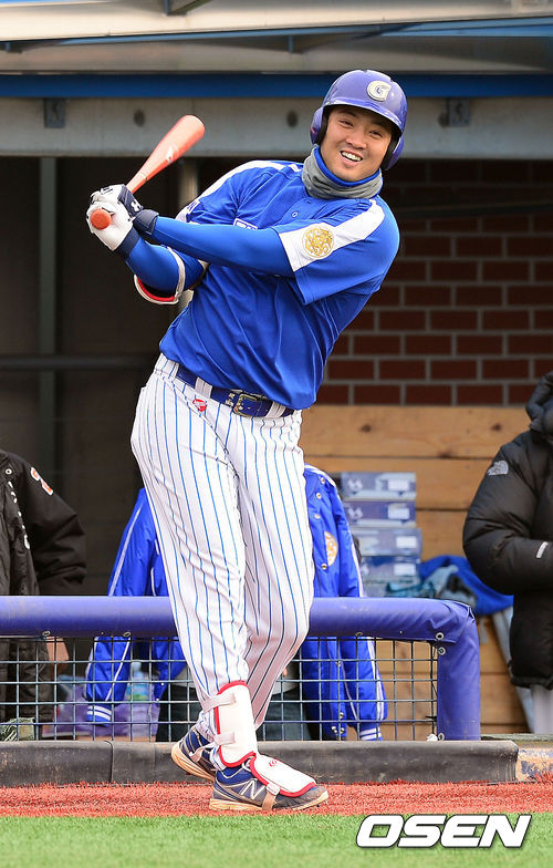 5일 오전 포항구장에서 열린 '2013 야구대제전' 포철고와 개성고의 경기, 1회말 개성고 채태인이 대기 타석에서 몸을 풀고 있다.