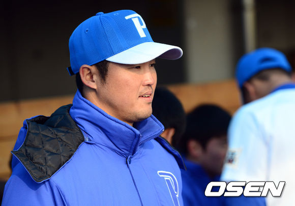 5일 오전 포항구장에서 열린 '2013 야구대제전' 포철고와 개성고의 경기, 롯데 자이언츠 박종윤이 경기를 관전하고 있다.