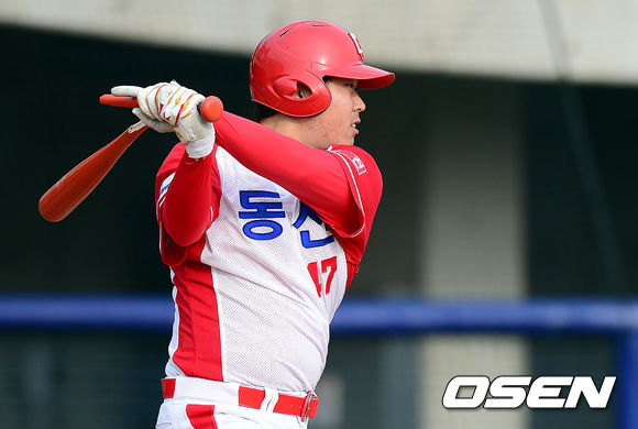 5일 오전 포항구장에서 열린 '2013 야구대제전' 동산고와 광주일고의 경기, 동산고 투수 김경태가 타격을 하고 있다.