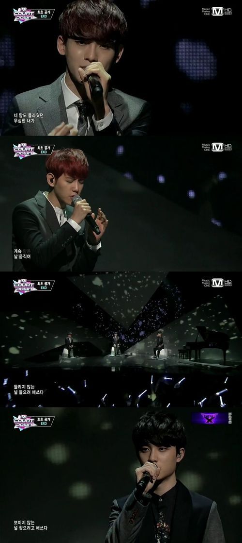 이날 백현과 디오, 첸은 검정색의 차분한 의상을 입고 무대에 앉은 채 등장했다. 피아노 선율에 어울리는 애절한 멤버 개개인의 감성과 화음이 돋보였다. 특히 댄스곡에서는 다 감상할 수 없었던 세 사람의 탁월한 가창력은 객석을 숨죽이게 할만큼 뛰어나 눈길을 끌었다.