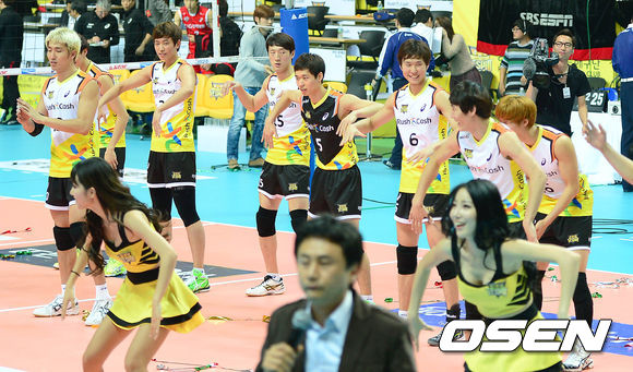 김세진 감독이 지휘하는 러시앤캐시는 5일 안산상록수체육관에서 열린 NH농협 2013-2014시즌 V리그 남자부 2라운드 LIG손해보험과 경기서 세트스코어 3-0(25-19, 25-23, 25-18) 완승을 거뒀다. 이날 승리는 러시앤캐시의 창단 첫 승. 1승 8패(승점 5)로 여전히 최하위에 머물러있지만 그동안 간절히 바랐던 승리의 테이프를 끊었다는 점에서 러시앤캐시에는 의미가 깊은 승리였다.
