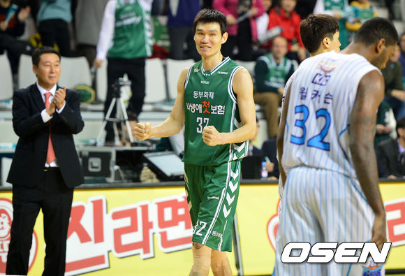 5일 오후 강원도 원주시 명륜동 원주종합체육관에서 '2013-2014 KB국민카드 프로농구' 부산 KT와 전주 KCC의 경기에서 동부는 15점을 올린 김주성의 활약에 힘입어 77-73으로 승리했다.