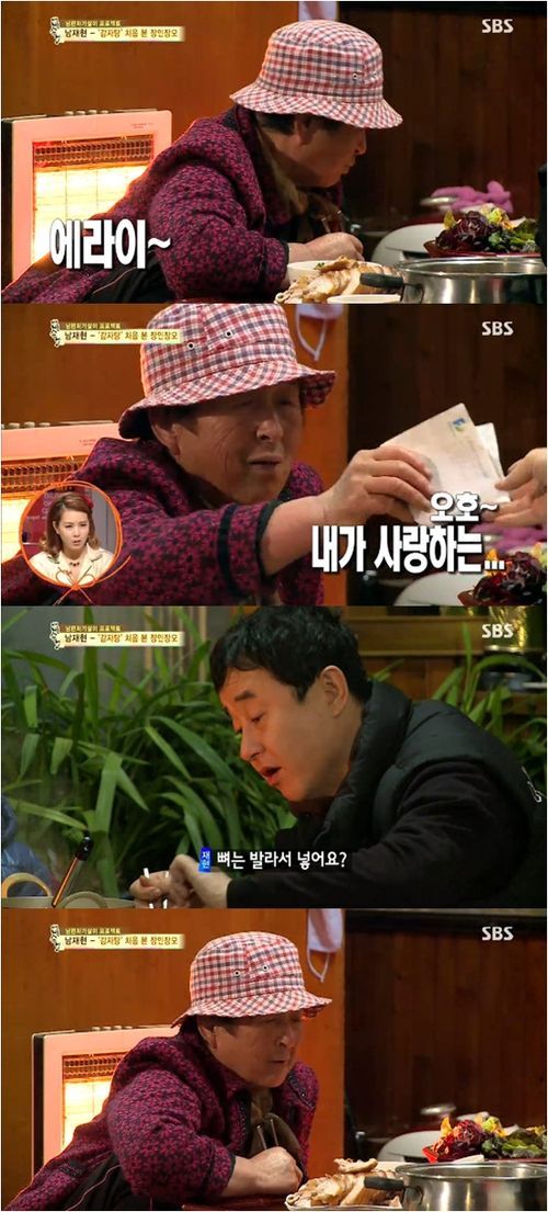 남재현은 족발, 감자탕, 순대, 닭발 등을 사왔다. 하지만 장모는 시큰둥해했다. 바로 감자탕을 처음 먹어본 것. 더욱이 순대를 먹은 후 “돼지 똥내 난다”고 일침을 가했다. 남재현은 가장 유명한 음식점에서 사온 음식에도 장모가 시큰둥해하자 봉투를 꺼냈다.
