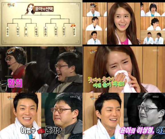윤아는 5일 오후 방송된 KBS 2TV 예능프로그램 '해피투게더3'에서 프로그램에 함께 하고 있는 남성 출연진 전원을 대상으로 이상형 월드컵을 했다.