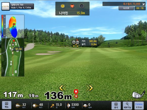 드라이버부터 퍼터까지 클럽별 기본 연습이 가능한 드라이빙 센터에서는 골프 초보자를 위한 똑딱이 연습, 경사, 스윙 템포와 자신에게 맞는 골프 클럽을 찾을 수 있는 피팅 모드 등 5가지 세부 연습을 제공한다. 티샷, 니어핀 등 샷의 강점과 단점을 파악할 수 있는 필드연습에서는 6개의 실제 골프 코스의 9홀 연습 기능과 연습 시작 전 컨시드 거리, 바람세기, 바람방향 등 옵션 설정을 할 수 있어 실전 감각을 키울 수 있다.