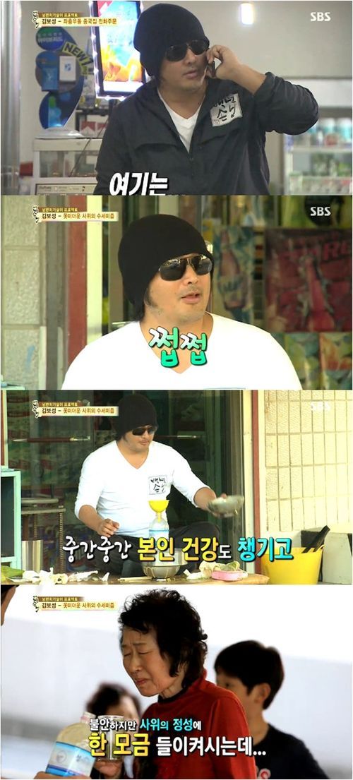 장모는 김보성이 만든 다소 쓴 수세미즙을 먹고 눈물을 훔쳤다. 그리고 김보성의 손을 잡고 고맙다고 인사를 건넸다. 사위의 정성에 감동한 것. 김보성 역시 장모의 눈물에 적지 않게 당황하면서도 미소를 지었다. 처가에 와서 시종일관 사고만 치던 김보성이 안긴 반전의 감동은 시청자들을 더욱 먹먹하게 했다.