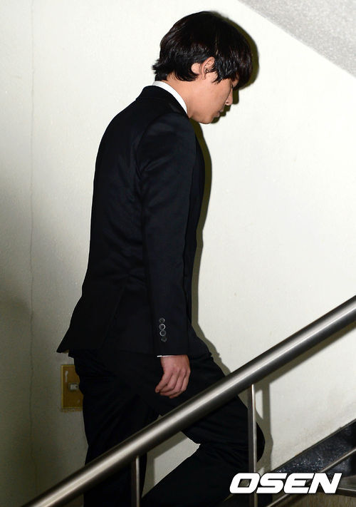 가수 토니안이 법원으로 가고 있다.