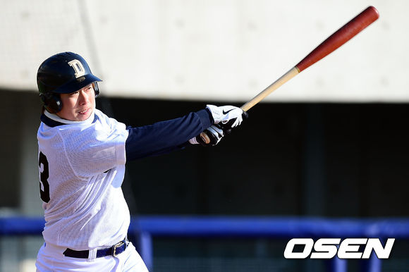 6일 오전 포항구장에서 열린 '2013 야구대제전' 동성고와 덕수고의 경기, 동성고 이원석이 2타점 적시 2루타를 때리고 있다.