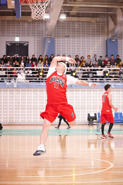 비하인드 컷 중 엉거주춤 강호동의 우스꽝스러운 슛동작이 눈길을 끈다. 사진 속 강호동은 농구장에 한 판 신명을 흩뿌리는 듯, 탈춤을 추는 듯 한 엉성한 포즈로 슛을 넣고 있다.