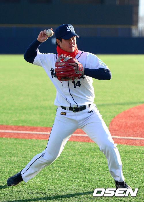 6일 오후 포항구장에서 열린 '2013 야구대제전' 충암고와 유신고의 경기에 앞서 유신고 최정이 수비훈련을 하고 있다.