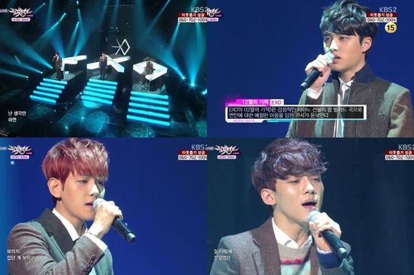 그룹 엑소의 첸, 디오, 백현이 애절함 가득한 곡 '12월의 기적'으로 컴백 무대를 펼쳤다.