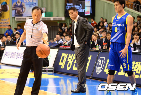 2쿼터 오리온스의 파울 판정에 추일승 감독이 불만스러운 표정을 짓고 있다.