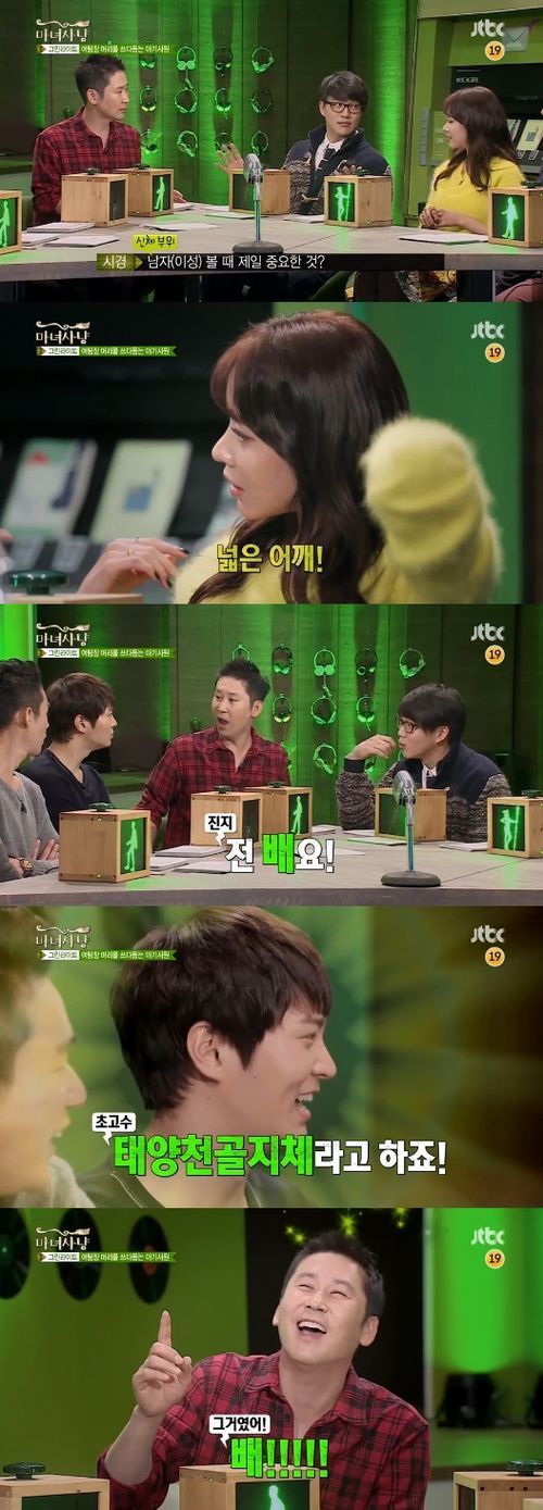 이날 MC들은 주원과 김아중에게 “이성을 볼 때 보는 곳은 어디냐”고 질문했다. 이에 김아중은 남자의 넓은 어깨를 본다고 답했다.