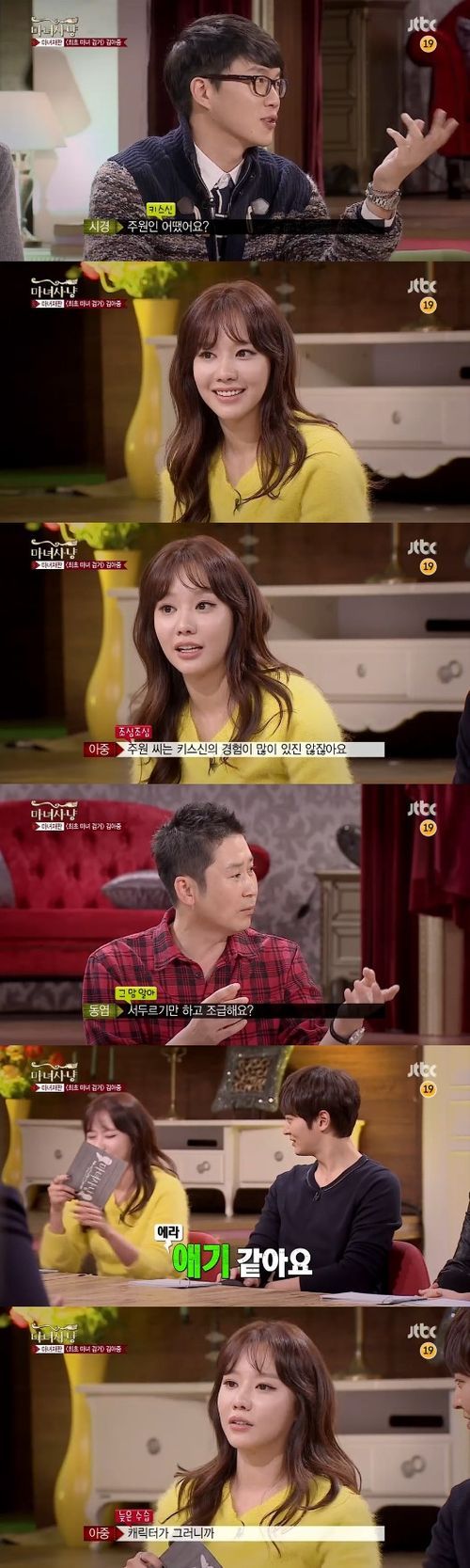6일 오후 방송된 JTBC '마녀사냥-남자들의 여자이야기(이하 마녀사냥)'에는 김아중과 주원이 출연해 솔직한 입담을 뽐내는 모습이 그려졌다.